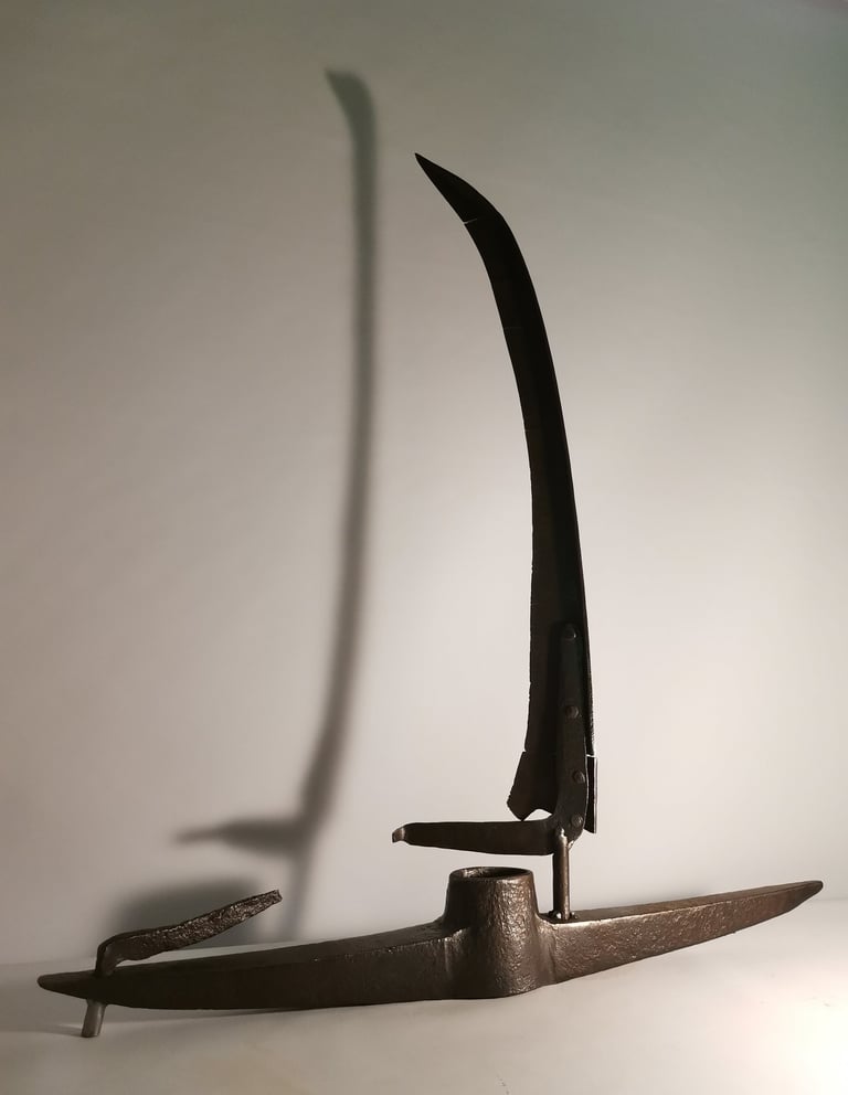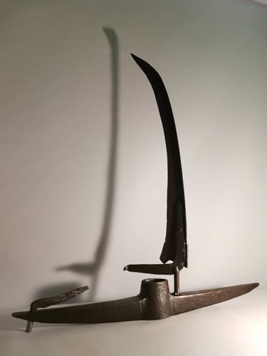 Veistoksieni aihioina käytän mm. vanhoja työkaluja, risoja koneen osia ja muuta tarkoitukseen sopivaa metalliromua mutta toisinaan myös vanhaa puuta, kiveä, tiiltä ja muita elämää nähneitä materiaaleja. Oleellista on, että materiaali on elänyt jo ainakin yhden elämän ja nyt pyrin antamaan sille uuden. Ruoste tai öljy, lika tai laho eivät ole ongelmia, ne ovat luonteenpiirteitä. Jokaisella valitsemallani osasella on oma historiansa ja mielestäni niiden ei tarvitse päätyä kaatopaikalle vaan voivat jatkaa tarinaansa vaikkapa taiteena kirjahyllyssäsi.